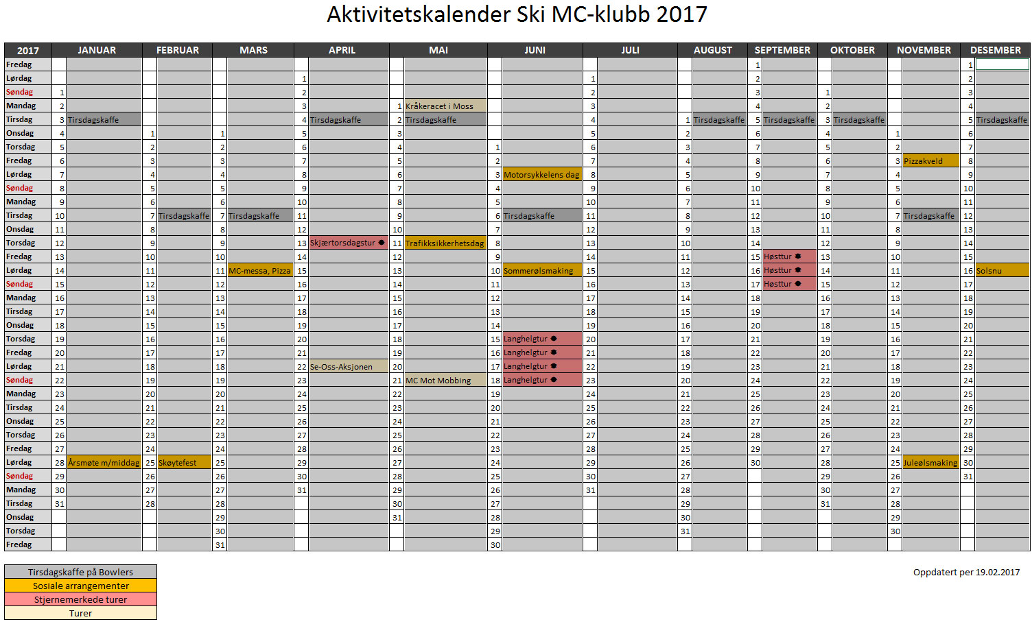 | Lørdag 26. | Årsmøte Ski MC-Klubb, Waldemarhøy i Ski. |
